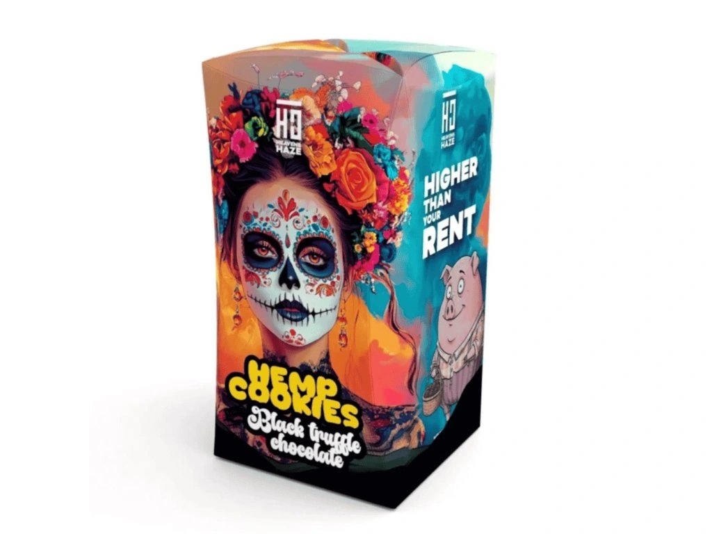Heavens Haze Hemp Cookies Black Truffle Chocolate 100 g – ahol a luxus találkozik a hagyománnyal és a kendermagokkal. Élvezze a prémium mézeskalács, mandula és kenderes ízkombinációt!